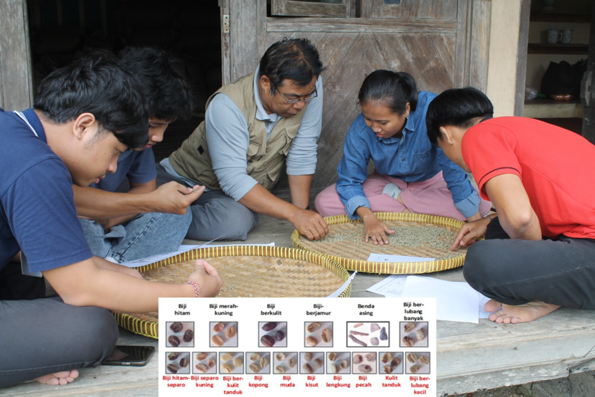 Pisahkan biji yang cacat dari biji normal serta benda asing. - Identifikasi jenis cacat: